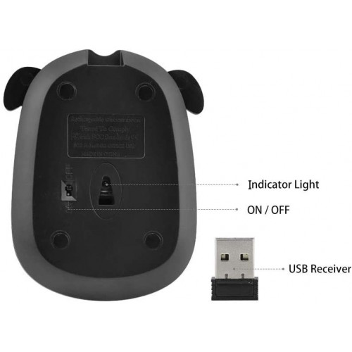 Cute Wireless Mouse, Cartoon Dog 2.4GHz Rechargeable Cordless Mouse with Nano USB Receiver Children Mice Kids Gaming Mouse for Notebook,Laptop,PC,Desktop (Black)