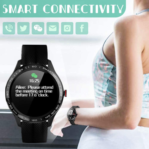 • ⌚ Multifunction Smart Watch : Date and 12h/24h time display, with functions of pedometer, weather, alarm clock , stopwatch, sedentary reminder, remote camera control, music control, Anti-lost alert, incoming call and SMS reminder, Message reminder, etc.