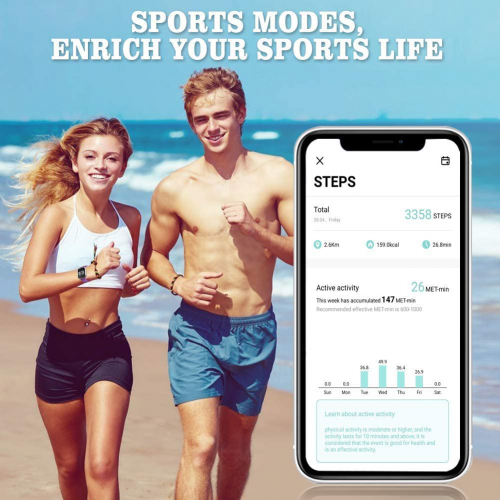 • ★【Heart rate and sleep monitoring】This fitness tracker monitors heart rate , uploading the real time data of heartbeats to phone app "Da Fit".Need to download the app and connect the phone to the phone via the app. Also support automatic sleep monitoring , All health data show as a chart on the APP , clearly your physical fitness status at whole day.Data cannot be used as a medical reference.